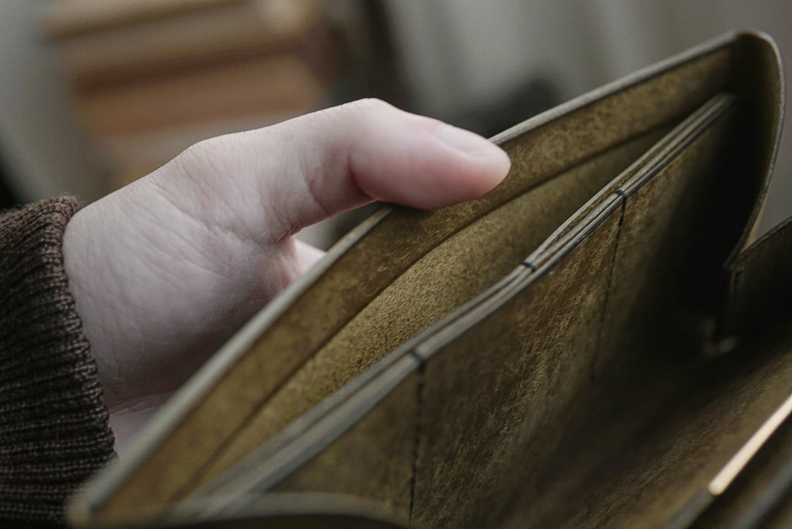 波のような独特なフラップの形状は単なるデザインではなく「長く使う」ということを考え生まれた用の美です。
