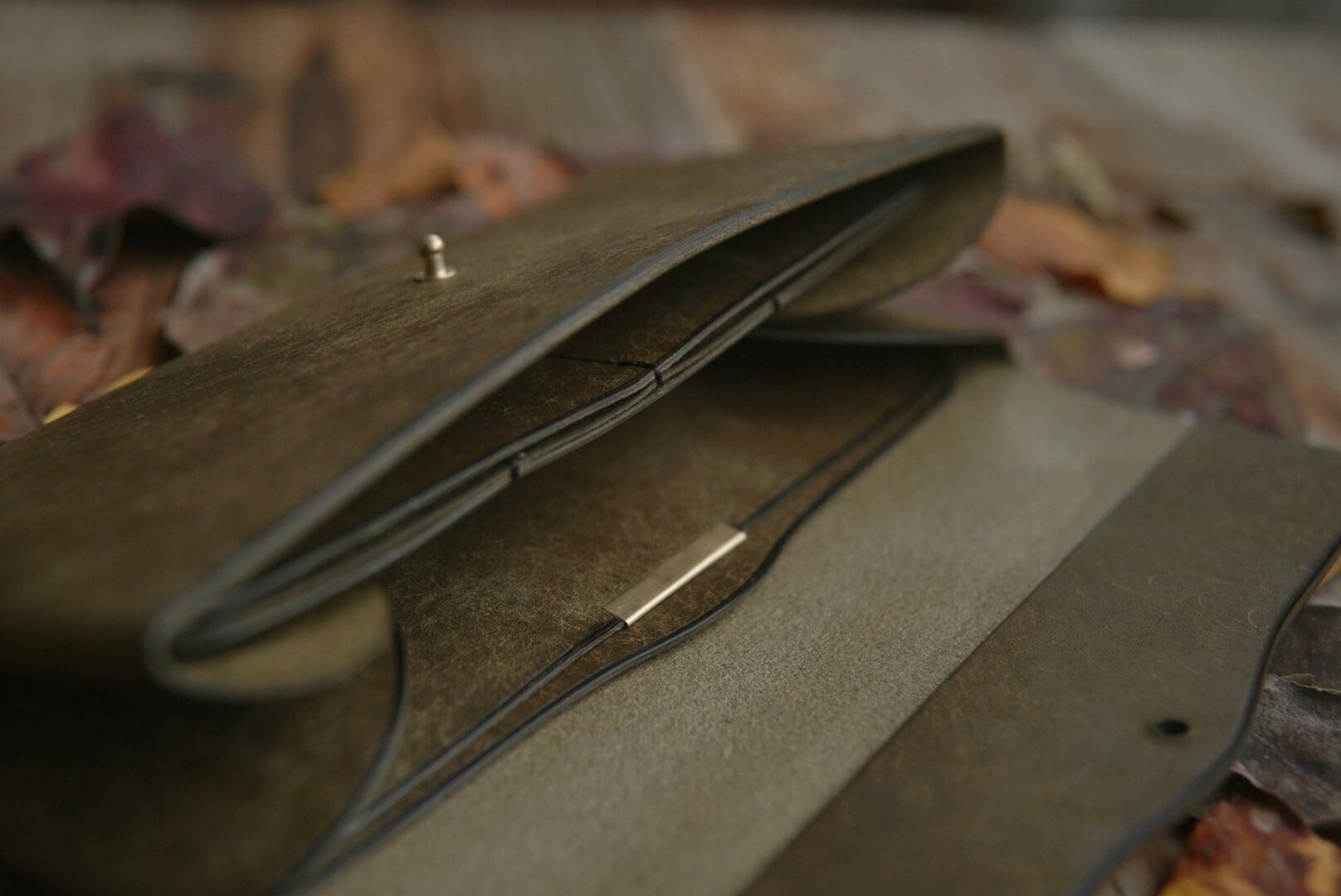 革を二重にしたフラップと独自のギボシ穴処理によってギボシ穴が開くことはなく,これまでにない癖になるような独特な開き心地,閉め心地をお楽しみいただけます。