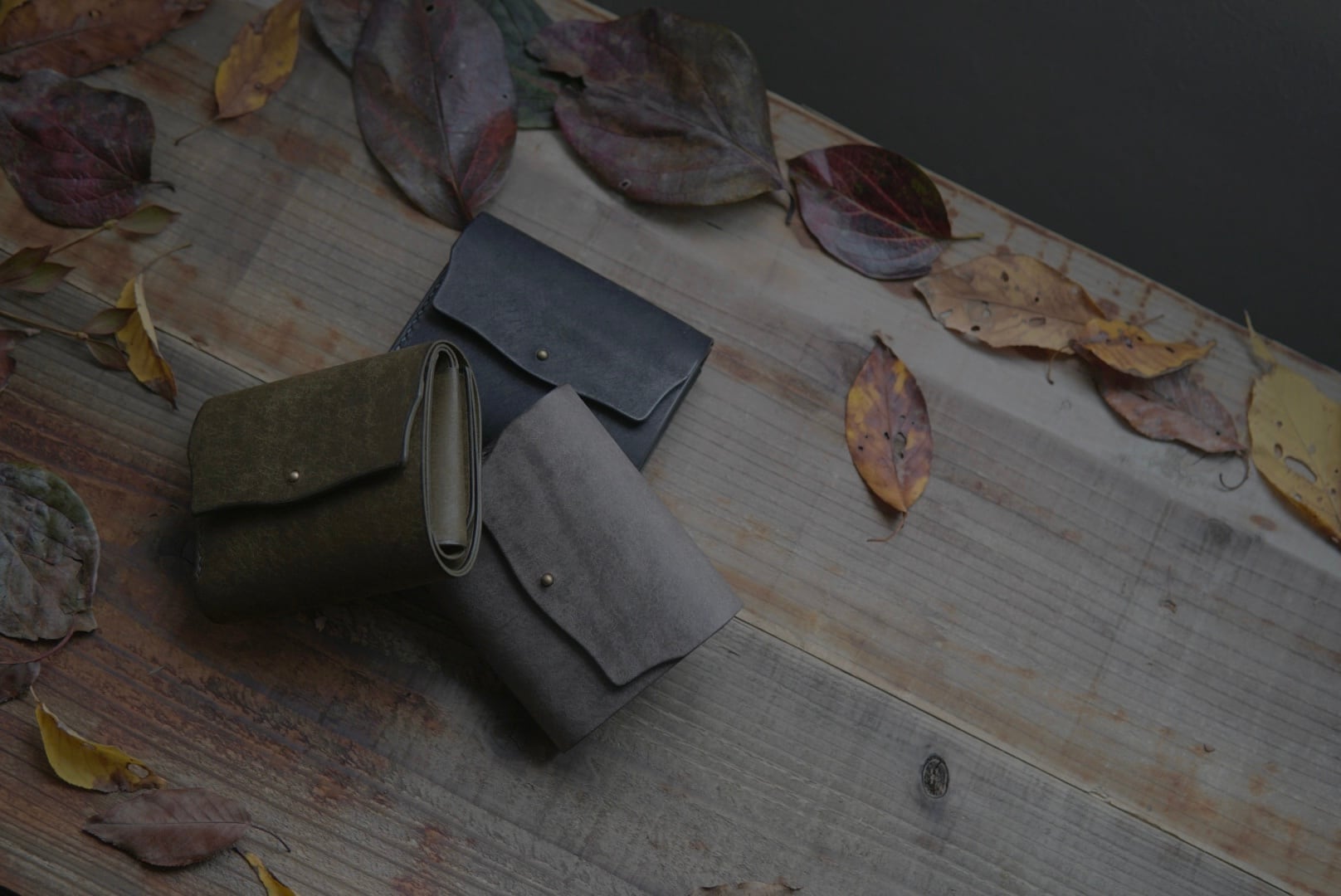 掌への馴染みと必要最低限の利便性を重視した折財布。