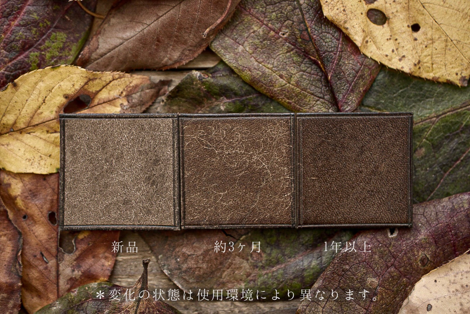 始まりは輝きの無い静謐さを纏った表情ですが,部分的に少しずつ明るさを取り戻し,まるで長年使い込んだかのような霞んだ風合いとなる経年変化をお楽しみいただけます。